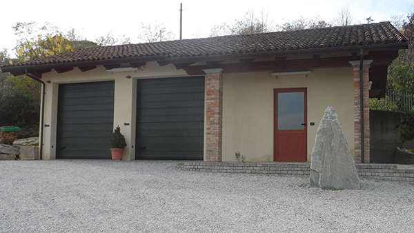 I portoni sezionali si aprono verticalmente verso l'alto, guadagnando così spazio sia dentro che davanti al garage e lasciando libero il passaggio. Si adattano perfettamente a tutte le aperture del garage: rettangolari, sagomate, ad archi.